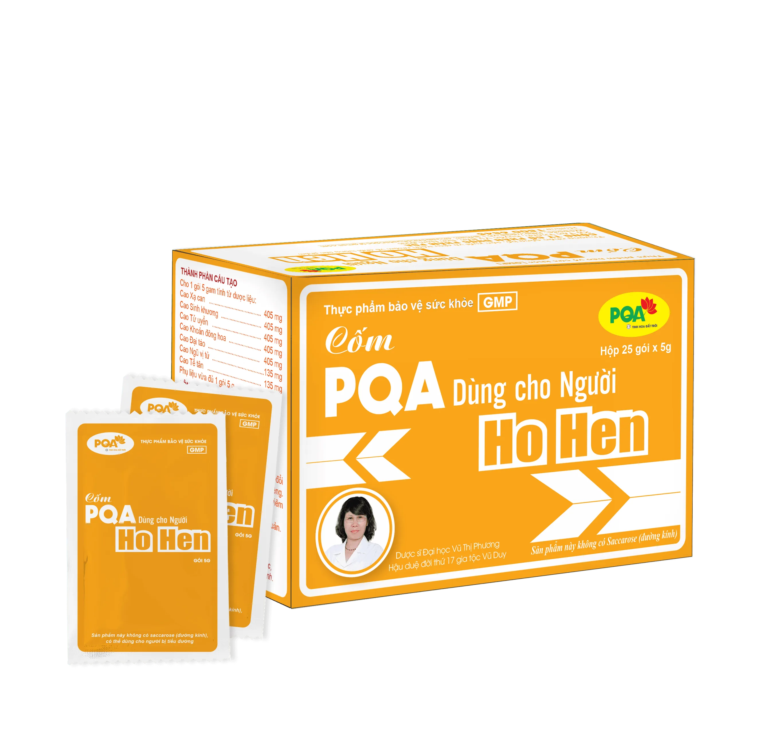 Cốm Ho Hen PQA là dược phẩm dùng cho người lớn và trẻ nhỏ hỗ trợ điều trị ho hen, hỗ trợ thanh họng, bổ phổi, giảm ho, long đờm.